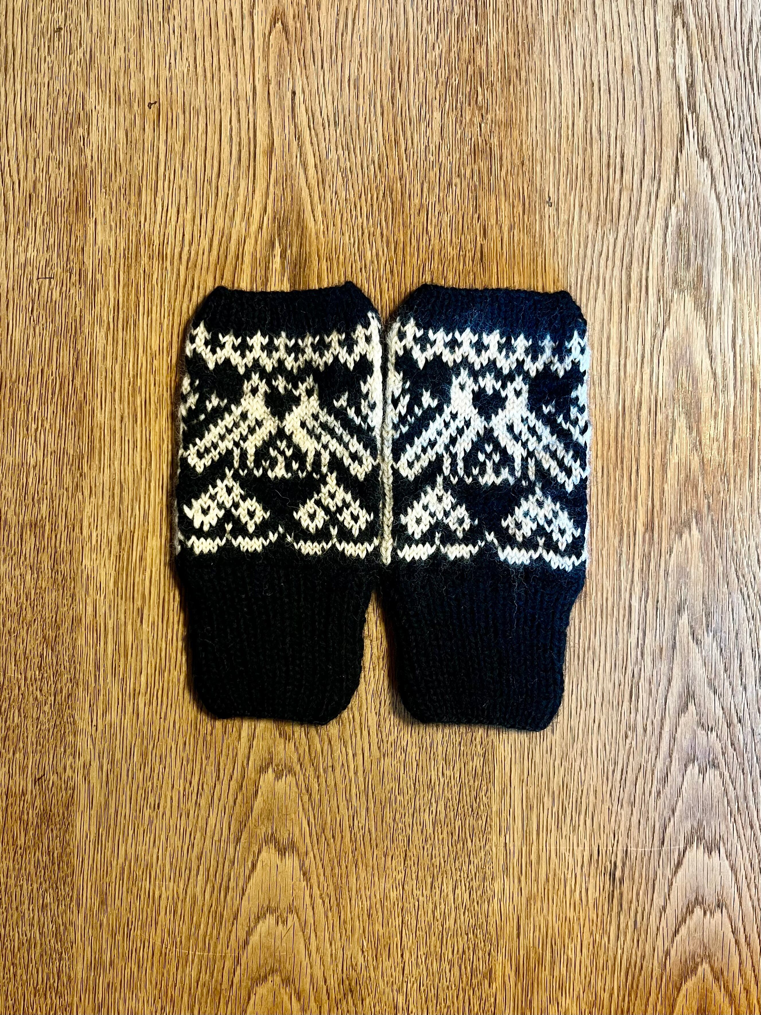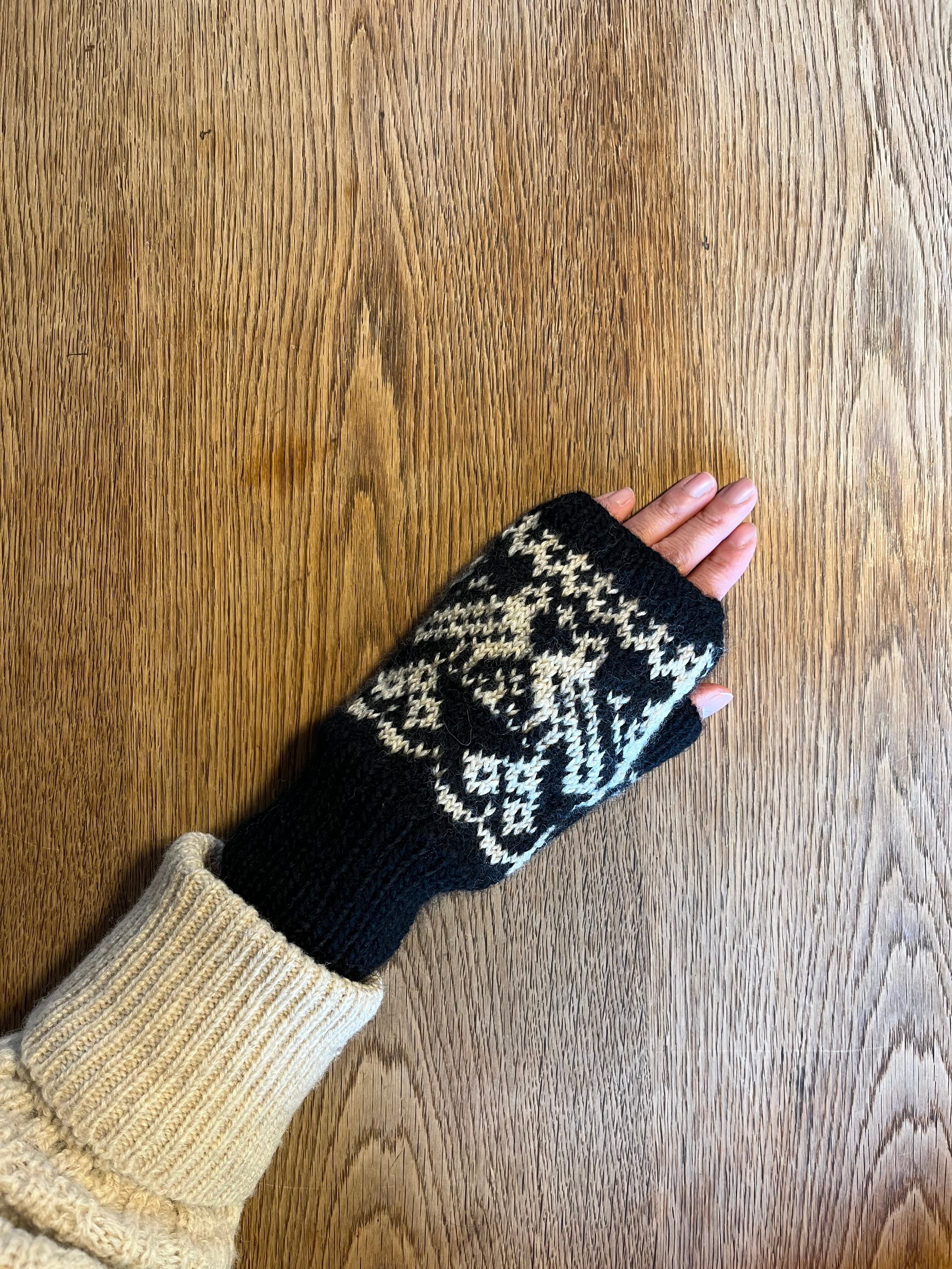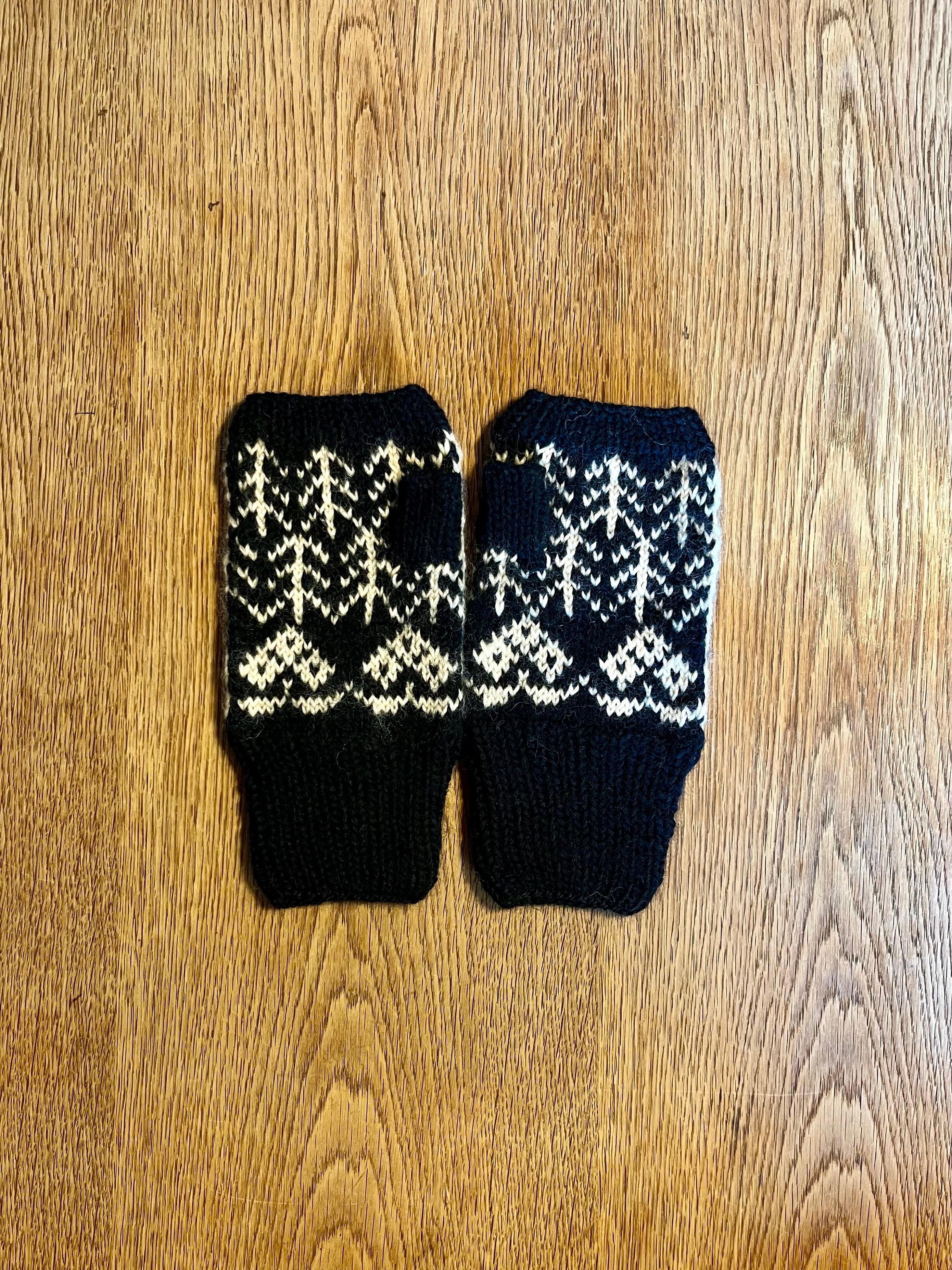 森の中でのんびり休む鳥の模様を編み込んだ指出しミトンを作りました。指先が出るのでミトンをつけたまま細かい作業もできます。長めのリブ部分ががすっぽり手首を包み込む、柔らかくてあたたかいミトンです。