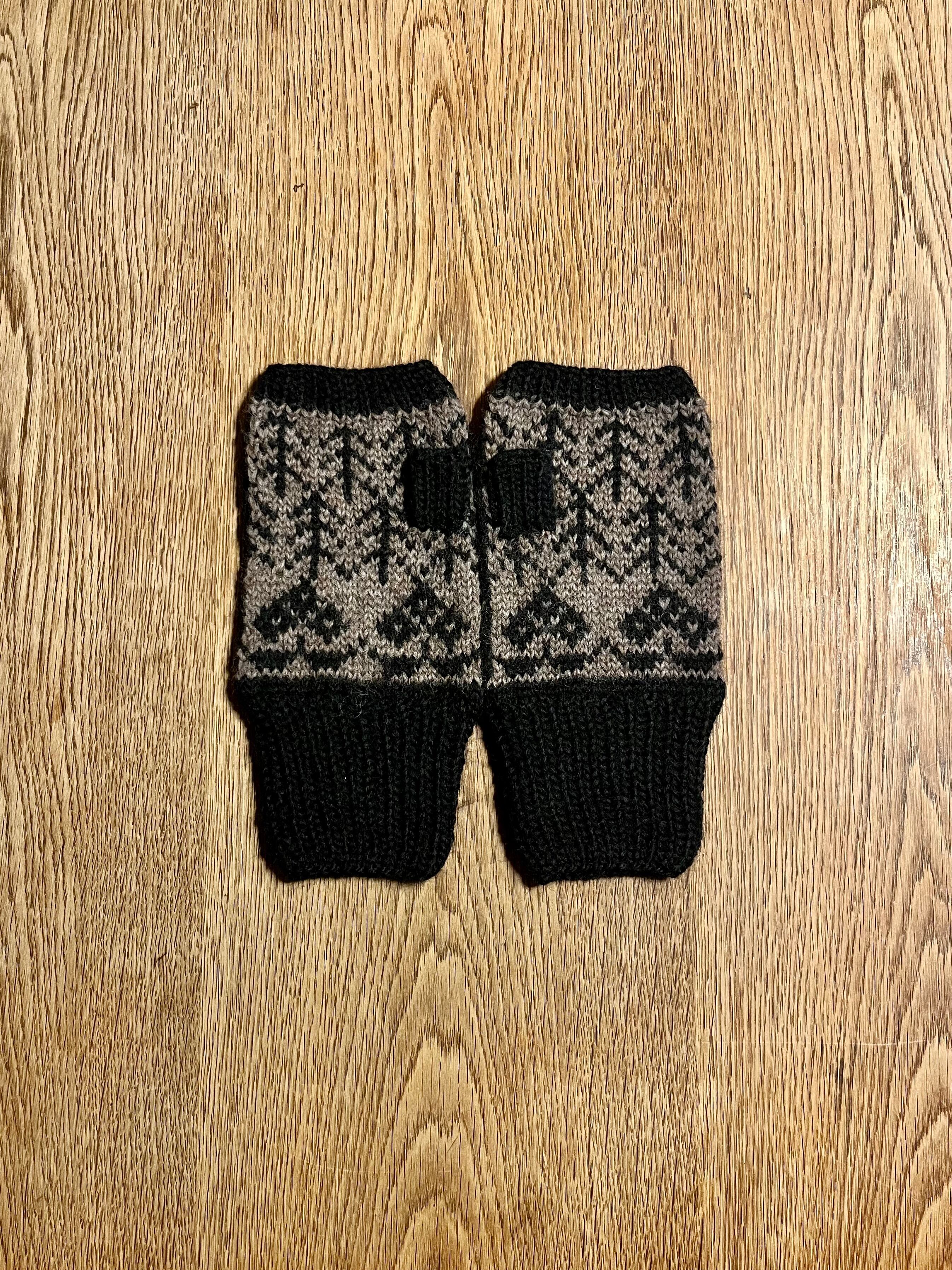 森の中でのんびり休む鳥の模様を編み込んだ指出しミトンを作りました。指先が出るのでミトンをつけたまま細かい作業もできます。長めのリブ部分ががすっぽり手首を包み込む、柔らかくてあたたかいミトンです。